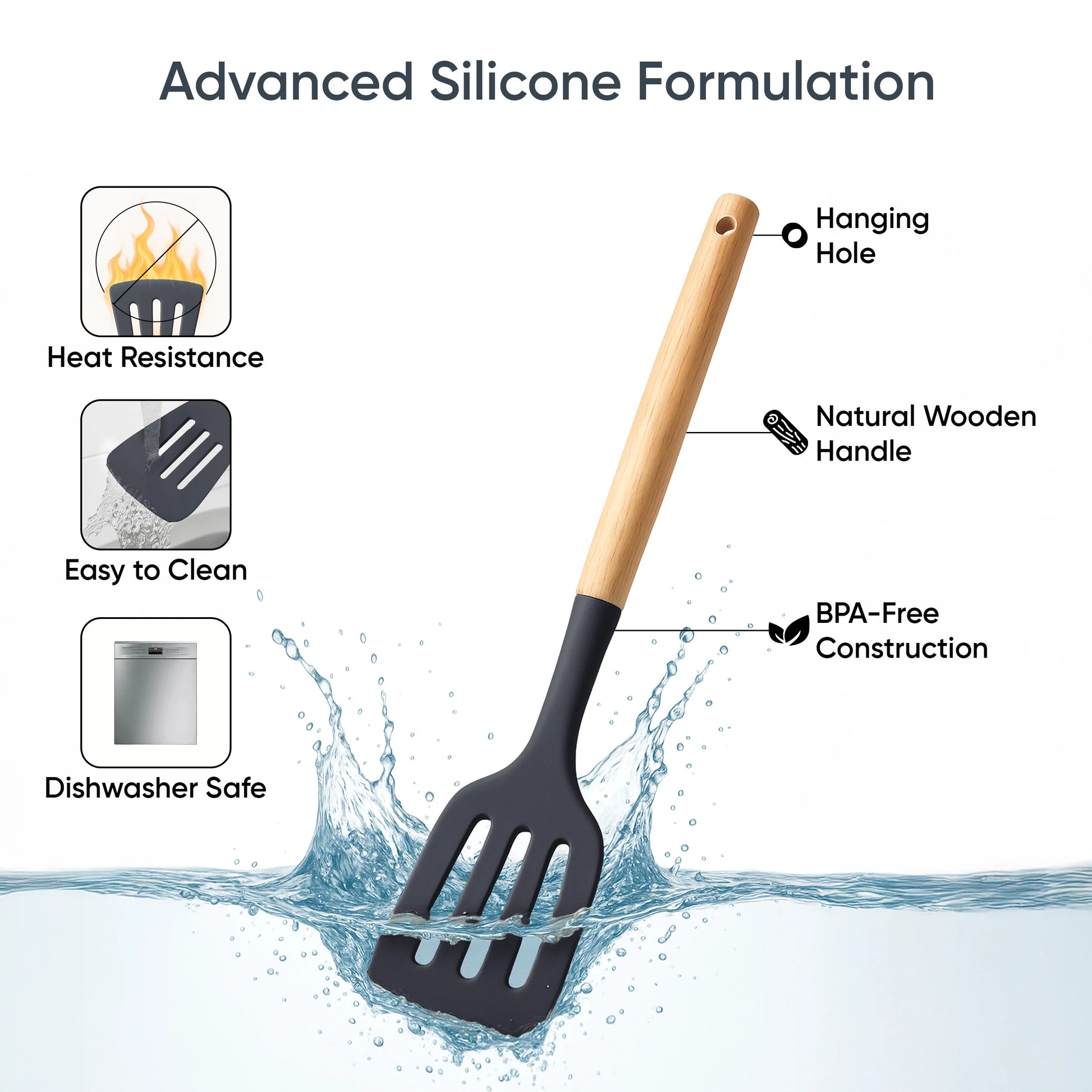 PREMIUM SILICONE HEAT-RESISTANT: Crafted from top-tier silicone, these utensils are durable, flexible, and safe to use with all types of cookware, ensuring long-lasting performance. Our utensils are heat-resistant and safe for use with hot dishes, ensuring they won't warp, melt, or emit harmful fumes, providing peace of mind while cooking