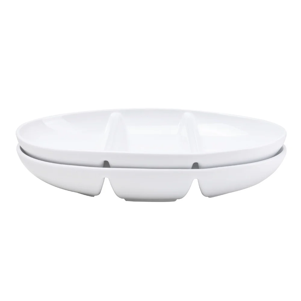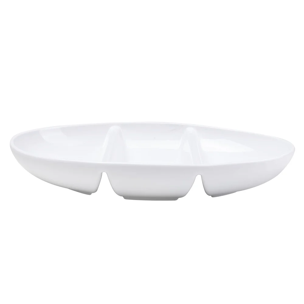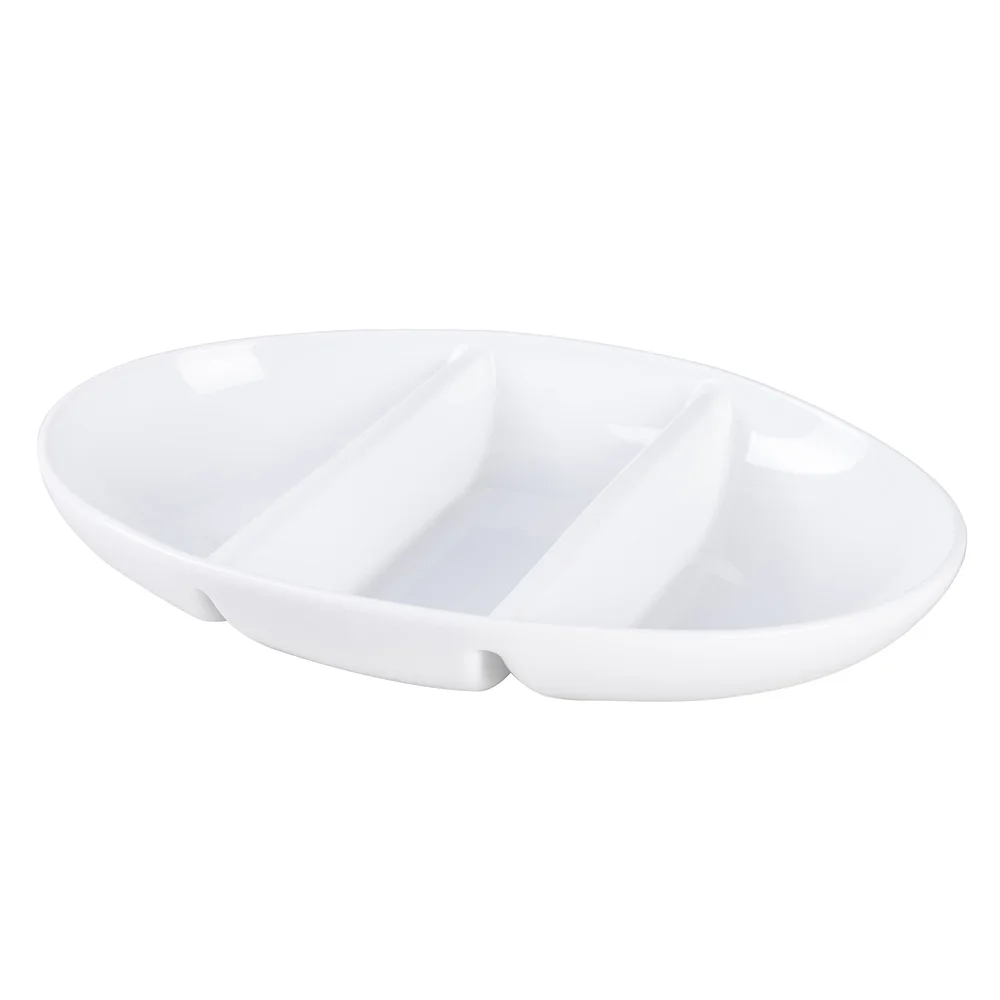 Porcelain Divided Bowl Three-Compartment Ceramic Serving Dish Ideal Snacks Soups Salads Chips Pasta Microwave Dishwasher Safe